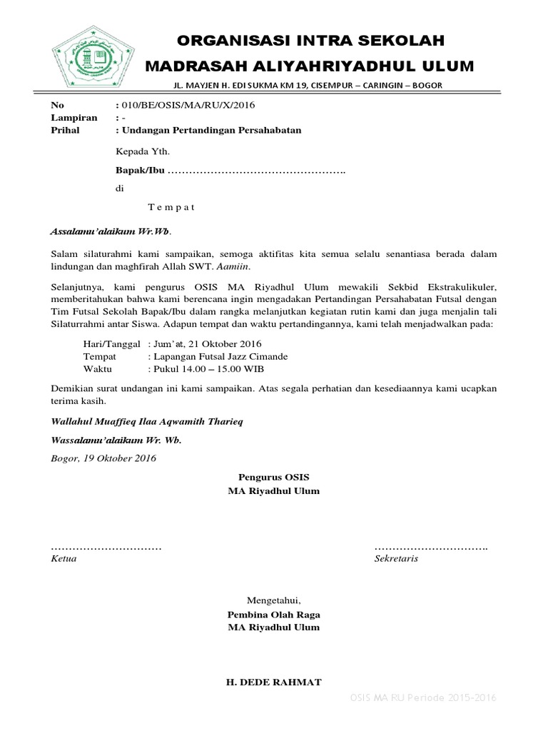 Contoh Surat Undangan Pertandingan Persahabatan Futsal Antar Sekolah Pdf
